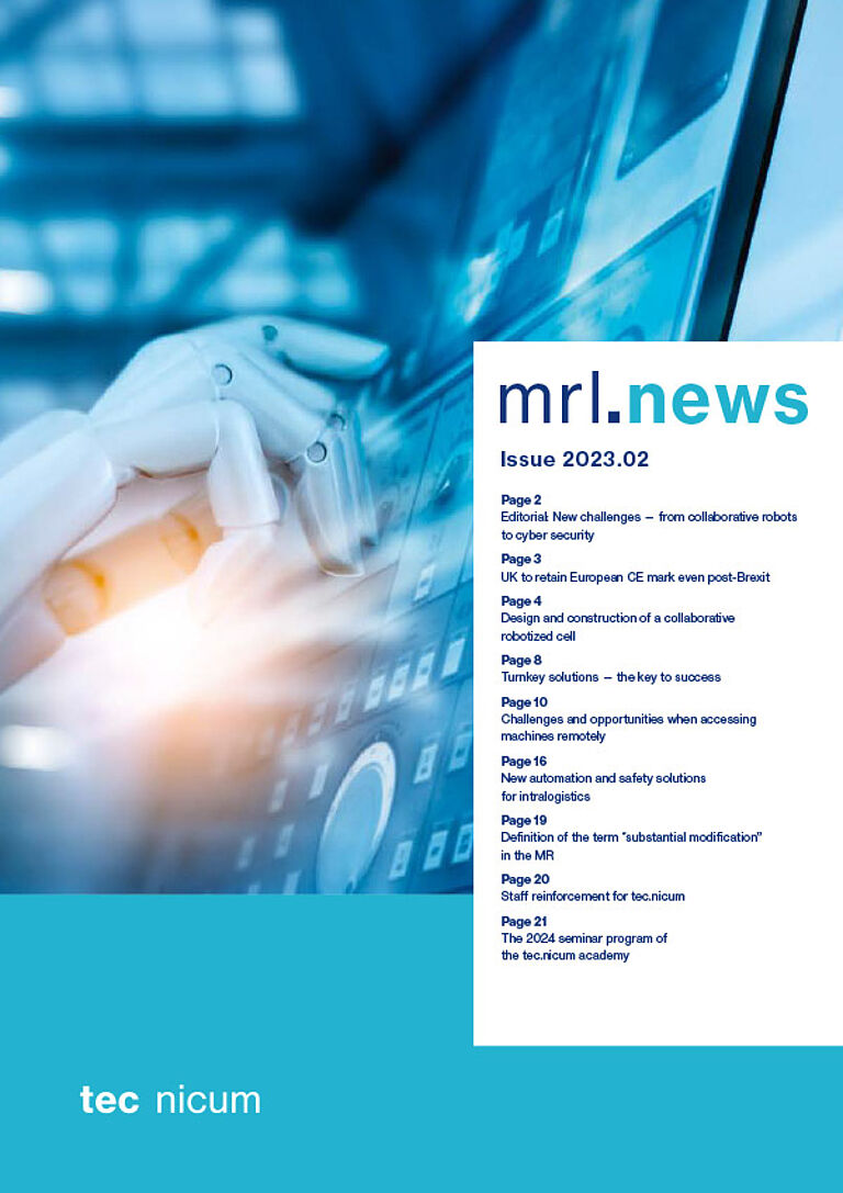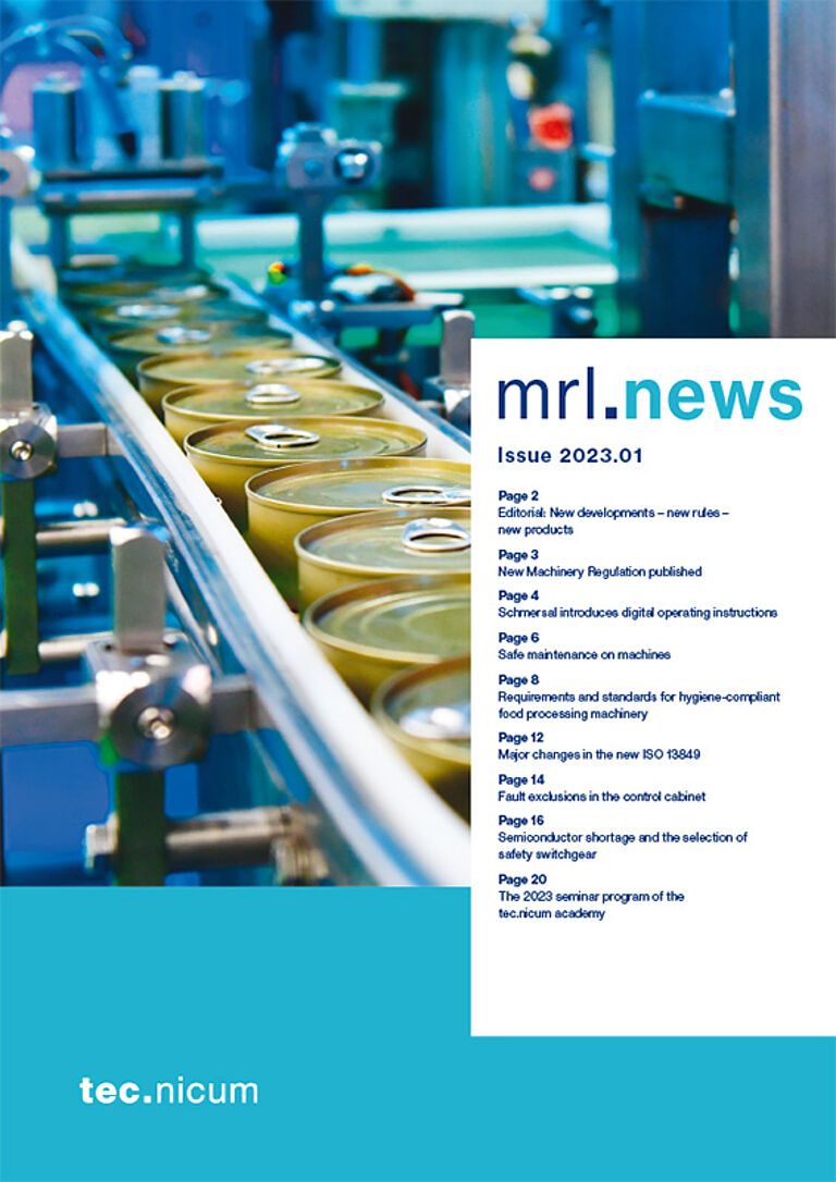 La sicurezza funzionale delle macchine è un campo di attività complesso: mrl news fornisce informazioni e notizie su tutti gli aspetti di questo argomento, come le innovazioni nei sistemi di sicurezza e nei dispositivi di commutazione di sicurezza, le modifiche alle norme e alle direttive, commenti e consigli per l'implementazione pratica e molto altro ancora.